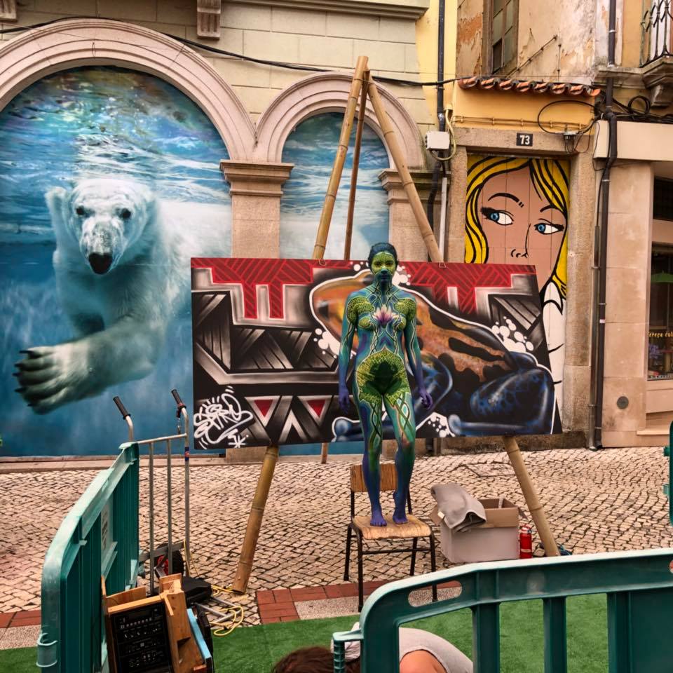 Vilija Vikuté, artista sueca de renome internacional, inspira-se nas relações humanas e naturais, no seu espírito, cor e emoções para transformar os corpos em obras de arte efémeras. O movimento de bodypainting é já uma tradição mundial e em Águeda, seis artistas de diferentes países sob a curadoria de Vilija fizeram o seu melhor para impressionar os visitantes do festival Agitágueda com trabalhos de alta qualidade. Durante um fim-de-semana, artistas e performers proporcionaram um espetáculo cultural de grande qualidade estética e criativa. Com uma conexão íntima com a fotografia, este espetáculo proporcionou imagens de rara beleza. A complementar esta atividade, realizou-se também um workshop de bodypainting no Parque da Alta Vila no dia 8 de julho.